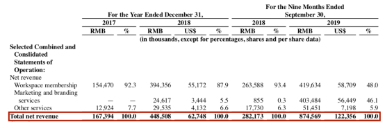 12月12日,中国共享空间优客工场向美国证券交易委员会(SEC)提交了招股说明书,拟在纽约证券交易所挂牌上市,证券代码为“UK”,计划在IPO中融资至多1亿美元。作为中国最大的协同工作空间社区,免不了被拿来与联合办公鼻祖Wework相比较。在后者美国上市折戟后,优客工场前赴后继。又逢一线城市写字楼寒潮,加之“轻资产”服务盈利模式颇受质疑,优客工场想要成为共享办公第一股道阻且长。 利润收入不敌 连年亏损 优客工场由毛大庆于2015年创立,注册资本2055万元。在此之前,毛大庆为万科集团副总裁。截至2019年9月30日,优客工场已在中国41个城市及新加坡布局197个联合办公空间,管理面积达60.8万平方米,提供72700个工位,会员数约60.9万。要管理经营好如此大的体量,并且要保证其盈利,绝非易事。 优客工场招股书显示,从2017年以来优客工场确实保持了稳步的利润增长。2017年、2018年以及2019年前三季度,优客工场总净收入分别为人民币1.67亿元、人民币4.49亿元和人民币8.75亿元。 截图来自:优客工场招股书 目前优客工场主要有三大块收入来源:空间会员费收入、营销和品牌服务收入以及其他服务收入。在2017年和2018年,优客工场最主要的收入来源还是办公空间会员服务的收入,占比超过85%。 虽然营收呈现出增长的态势,同时优客工场亏损也在持续扩大。2017年、2018年和2019年前三季度,优客工场亏损额分别为3.73亿、4.45亿和5.73亿,2017年至今,优客工场累计收入14.91亿,亏损额达到13.91亿。 截图来自:优客工场招股书 至于亏损原因,优客工场在招股书中将其解释为门店扩张、门店重整、门店收购等需要大量的资金。《资本一线》走访了优客工场位于上海徐汇区的漕河泾社区,实地查看了其办公环境。社区整体装修风格活泼,办公环境比较明亮,还有一些公共区域的摆放设置。优客工场会提供公共区域的清洁打扫服务,也会在每月举办生日会等福利活动,这些都是由优客工场出资。 “轻资产+二房东”盈利模式 共享办公空间的传统商业模式其实非常简单,也并非一家独创。公司需要低价签下房子物业,进行改造,然后高价再出租,赚取的是中间差价,这也就是我们通常来说的“二房东”,在房屋租赁市场中“蛋壳”和“自如”也都逃不出这个商业模式。然而从优客工场来看,其中就出现了两个问题。第一,优客工场并不能以低于市场的价格就购入价格低的写字楼。第二,投入使用的办公楼,用户的入住率不能得到保证。与住宅房屋租赁不同,写字楼的租赁情况与经济大环境密切相关。 《资本一线》了解到,目前入驻在优客工场漕河泾社区的主要是AI以及网络科技公司的小型初创企业,为了保证客户的稳定,优客工场要求入驻的公司押二付二。并且在企业入驻时,要求入驻公司出具企业经营执照等证件,由管理者交往北京优客工场总部进行审核,以此来保正其用户的优质和稳定性。 在优客工场的招股书中提到,截至2019年9月30日,优客工场171个运营空间和65个成熟空间(运营两年以上)总入住率分别为79%和83%。而早前公布的《2018年中国联合办公活力指数报告》显示,联合办公出租率要达到85%才能实现盈亏平衡。《资本一线》向管理人确认走访的社区入驻率目前也差不多在80%,这就让共享空间单纯凭借“二房东”模式盈利成为了一个难题。为应对这一问题,优客工场逐渐将重心转移向“轻资产”,向入驻公司提供人力资源、营销等项目服务来收取费用,并且已经正向盈利。 招股书显示,在优客工场今年前9个月取得的8.75亿元营收中,办公社区会员收入约为4.20亿元。另外,市场及品牌服务收入约为4.03亿元,这部分的盈利主要是市场及品牌服务,为入驻的企业做一些人力资源或者是广告宣传方面的业务。从而获得利润收入。从招股书可知,二者占比分别为48.0%和46.1%。 截图来自:优客工场招股书 从优客工场的APP“优鲜集”中,我们可以看到注册成为会员后,如要预定办公室,或者是广告宣传服务,就可以从APP上下订单。共享空间因为其租用的灵活性受到了租客的欢迎,如果只是想要临时租用办公场所,只需要在“优鲜集”的APP上进行预订。 然而也有行业人员对“轻资产”的服务商业模式并不买账:优客工场为了与WeWork有所区分,特别是在WeWork用“科技公司”包装自己的这套做法在资本市场上不被认可之后,就换了一个词:“服务赋能”,但其商业模式和未来的发展方向与WeWork有90%的相似度。“这其实是文字游戏,优客可以理解为一个小号的WeWork。” 优客工场上市“好”时机 WeWork在2018年底的一轮融资中估值为470亿美元,而其最新估值跌落至80亿美元。目前美国资本市场对WeWork所代表的共享办公概念并不看好,作为其中国效仿者,优客工场在这个时间点赴美上市恐怕也将遭遇不小的挑战,对于为何要在这个时间点选择上市,或许也与优客工场的资金情况有关。 据企查查显示,2018年11月,优客工场曾公开宣布完成了一轮2亿美元的D轮融资,并在这轮融资中得到了30亿美元的估值。不过,从披露的招股书看,这笔融资极有可能是一笔“明股实债”的融资。 在2018年的流动负债项目下“当前以股份结算的负债”显示,优客工场有2.17亿美元的借款。通常来说,流动负债指一年内需要偿还的债务。 截图来自:优客工场招股书 此外,优客工场在2017年、2018年、2019年前三季度,通过筹资活动产生的现金流分别为4.98