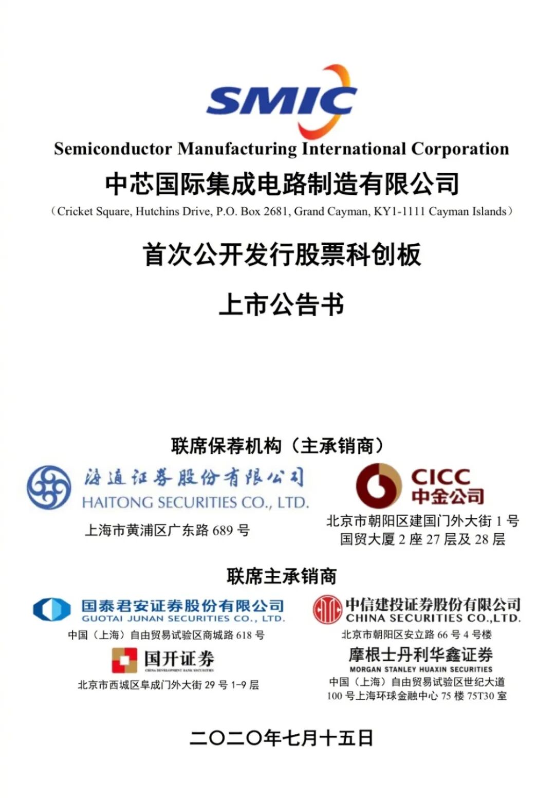 6月1日,中芯国际递交科创板上市申请,火速获批后,7月16日挂牌科创板。中芯国际代码为688981,本次发行价为27.46元/股,共募资462.87亿元。