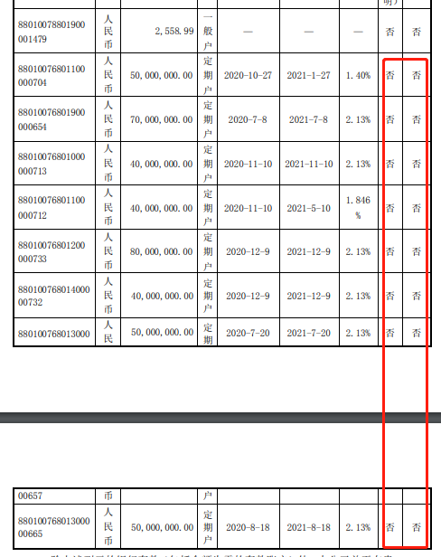 询证信息显示,年审会计师就智慧投资在浦发银行的9笔存款进行了询证,询问是否存在冻结、担保或其他使用限制,是否属于资金归集(资金池或其他资金管理)账户等,结果显示均为“否”。
